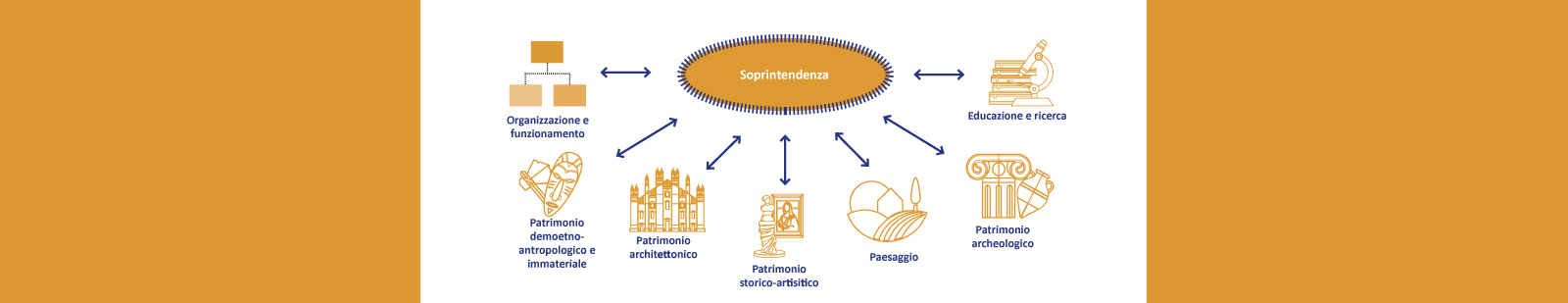 Tale articolazione ha lo scopo di supportare il Soprintendente nell’esercizio delle funzioni di tutela nel territorio con le competenze tecnico-scientifiche specialistiche di settore (patrimonio archeologico, patrimonio architettonico, patrimonio storico-artistico, patrimonio demoetnoantropologico, paesaggio), con le competenze di studio e ricerca e con le competenze più propriamente amministrative (organizzazione e funzionamento).