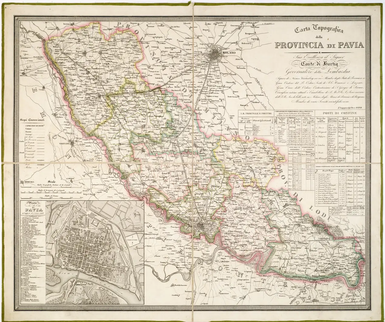 Alagna, Albaredo Arnaboldi, Albonese, Albuzzano, Badia Pavese, Bascapè, Battuda, Belgioioso, Bereguardo, Borgarello, Borgo San Siro, Bornasco, Breme, Candia Lomellina, Colli Verdi, Carbonara al Ticino, Casorate Primo, Cassolnovo, Castello d’Agogna, Castelnovetto, Cava Manara, Ceranova, Ceretto Lomellina, Cergnago, Certosa di Pavia, Chignolo Po, Cilavegna, Confienza, Copiano, Corteolona e Genzone, Costa de’ Nobili, Cozzo, Cura Carpignano, Dorno, Ferrera Erbognone, Filighera, Frascarolo, Galliavola, Gambarana, Gambolò, Garlasco, Gerenzago, Giussago, Gravellona Lomellina, Gropello Cairoli, Inverno e Monteleone, Landriano, Langosco, Lardirago, Linarolo, Lomello, Magherno, Marcignago, Marzano, Mede, Mezzana Bigli, Mezzana Rabattone, Miradolo Terme, Monticelli Pavese, Mortara, Nicorvo, Olevano di Lomellina, Ottobiano, Palestro, Parona, Pavia, Pieve Albignola, Pieve del Cairo, Pieve Porto Morone, Robbio, Rognano, Roncaro, Rosasco, San Genesio ed Uniti, San Giorgio di Lomellina, San Martino Siccomario, San Zenone al Po, Sannazzaro de’ Burgondi, Sant’Alessio con Vialone, Sant’Angelo Lomellina, Santa Cristina e Bissone, Sartirana Lomellina, Scaldasole, Semiana, Siziano, Sommo, Spessa, Suardi, Torre Beretti e Castellaro, Torre d’Arese, Torre de’ Negri, Torre d’Isola, Torrevecchia Pia, Travacò Siccomario, Trivolzio, Tromello, Trovo, Valeggio, Valle Lomellina, Valle Salimbene, Velezzo Lomellina, Vellezzo Bellini, Vidigulfo, Vigevano, Villa Biscossi, Villanova d’Ardenghi, Villanterio, Vistarino, Zeccone, Zeme, Zerbo, Zerbolò, Zinasco.